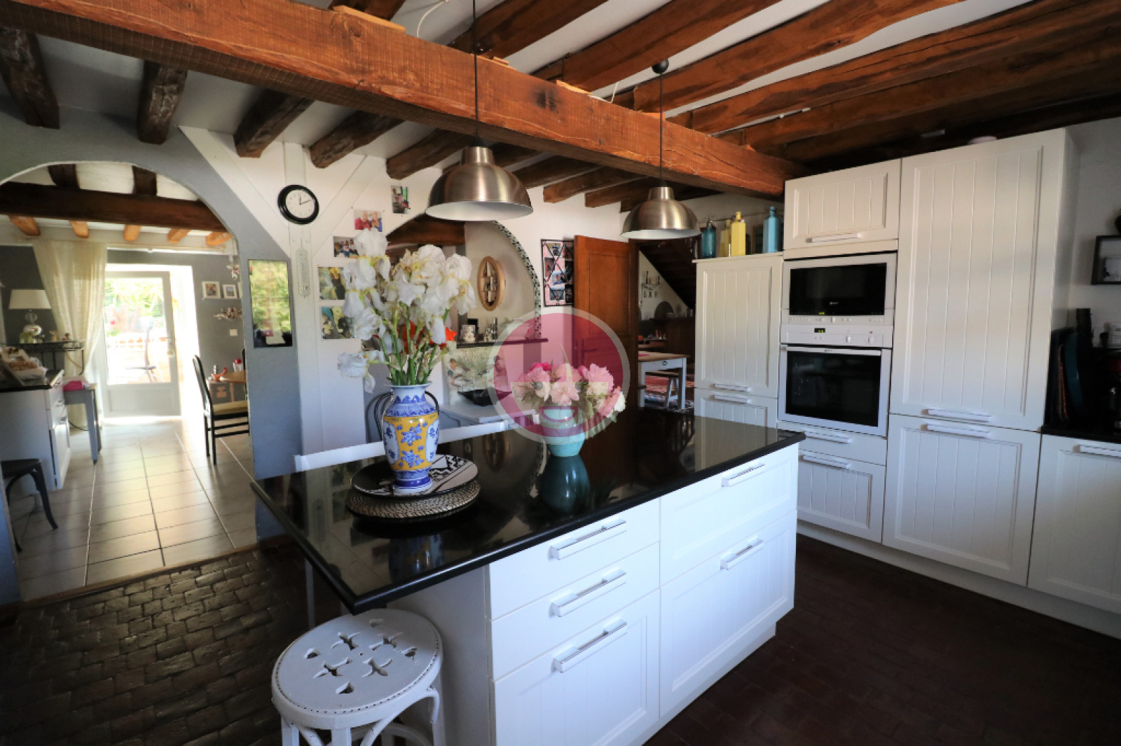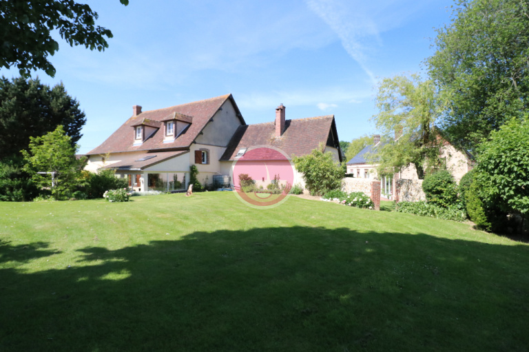Située sur axe direct à 25 minutes de CHARTRES et DREUX et 2 minutes de CHATEAUNEUF-EN-THYMERAIS, superbe propriété entièrement rénovée composée d'une habitation principale de 10 pièces sur 260m² habitables environ et d'une maison d'amis de 90m². L'habitation principale offre une entrée, wc avec lave-mains, une pièce de vie très spacieuse de plus de 70m² avec une magnifique cheminée et toit cathédrale cuisine récente aménagée et équipée communiquant à la fois sur le salon et la salle-à-manger, vous pourrez profiter d'une agréable véranda ouverte sur une terrasse extérieure avec partie spa orientée sud-est. L'étage est constitué de deux parties dont l'accès s'effectue par deux escaliers distincts. La première partie offre trois grandes chambres, une salle de bain avec baignoire et douche à l'italienne, un dressing aménagé, wc. La seconde partie dessert une très grande mezzanine, un bureau, deux chambres, pièce avec baignoire. La propriété est pourvue d'un cellier-chaufferie, d'un garage attenant, d'une cave enterrée, ainsi qu'une chambre avec entrée indépendante sur le côté de la maison. La maison d'amis est composée d'une entrée desservant une chambre très spacieuse avec placards, une cuisine, salle-à-manger aménagée, une pièce de vie avec baie vitrée donnant sur une belle terrasse, salle d'eau, wc. Vous bénéficierez également de deux dépendances à usage de remises. L'environnement de 2500 m² environ est paysagé et offre différentes ambiances avec ses deux terrasses, son grand jardin d'agrément et une mare. Notre avis : Produit d'exception idéalement situé à la jonction de deux axes directs, proche de toutes commodités, écoles et collège, alliant le charme de l'ancien et le confort de prestations modernes telles que l'aménagement de la cuisine, les ouvrants en double vitrage PVC et aluminium, le spa. Vous n'avez plus qu'à poser vos valises ! A visiter sans tarder.