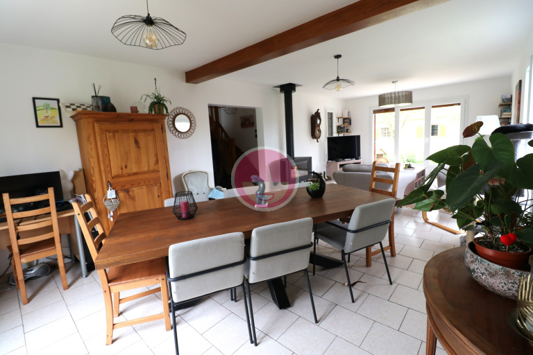 Au coeur de toutes les commodités d'un village actif et proche de Chartres : Grande maison familiale édifiée par un maçon en 1995 et rénovée récemment offrant : En RDC, entrée desservant une belle pièce de vie avec poêle à bois, cuisine aménagée et équipée, cellier, dégagement desservant un bureau, deux chambres, une salle de bains, wc, accès à un double garage attenant + buanderie. A l'étage, vaste salle de jeux, deux chambres, un bureau, une salle de bains, wc, un dressing. Belle dépendance extérieure offrant 50 m2 + une cave. Chauffage gaz citerne relayée par le poêle à bois. Très belles prestations sur l'ensemble de la maison, fermetures triple vitrage, isolation. Maison reliée au tout à l'égout communal.